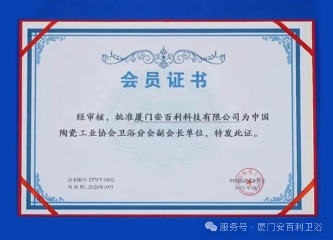 10月16日,由中国陶瓷工业协会指导,厨卫资讯主办的中国陶瓷工业协会卫浴分会成立大会暨第十九届厨卫行业高峰论坛在佛山圆满落幕。会上,厦门安百利科技有限公司当选中国陶瓷工业协会卫浴分会副会长单位。