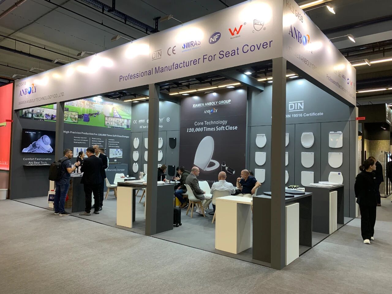 厦门安百利带来全球领先核心技术12万次强压寿命的缓降盖板,超静音一字阀!展现创新的力量,为大家呈现一场卫浴盛宴!欢迎全球客户朋友,我们在4.2号馆G45恭候您的到来!