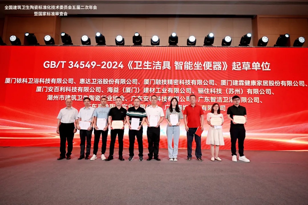 2024年6月25日,全国建筑卫生陶瓷标准化技术委员会年会暨GB/T 34549-2024《卫生洁具 智能坐便器》起草单位证书颁发,在四川成都盛大召开,期间传来令人振奋的喜讯,大会为厦门安百利颁发了中国《卫生洁具 智能坐便器》行业标准起草单位的证书,这一里程碑式的成就标志着安百利正式全面进入智能马桶领域,开启了发展的新篇章。
